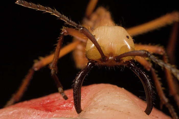 وقد أكد خبراء بيولوجيين بأن قبائل في شرق أفريقيا استخدمت نمل الجيش من نوع دوريلاس كغرز في خياطة الجروح، كما فعل الشيء ذاته سكان أمريكا الجنوبية، حيث استخدموا نمل ” Eciton” لذات الغرض. ويتم سحب رأس النملة من جسدها في حال التصقت بالجرح! وقالت مصادر بأنه تم ذكر استخدام رؤوس النمل في النصوص الهندوسية التي ترجع لـ 1000 قبل الميلاد، كما أن الاستخدام انتشر في آسيا الصغرى، وأوروبا.